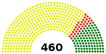 In 1971, the New Order regime of Indonesia held the first legislative elections since 1955 in an effort to establish a system of government with President Suharto and the Indonesian military in control and to give this system legitimacy. Thanks to government manipulation of the nine contesting parties and intervention by the government and the military, the government-sponsored Golkar organization won 63 percent of the vote, giving it 227 of the 251 directly elected seats in the DPR as well as all nine indirectly elected seats in Western New Guinea. Golkar was also awarded the remaining 100 seats according to the provisions of the 1969 Election Law, giving it 336, almost three quarters of the total.[1][2][3]