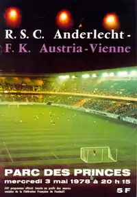 The 1978 European Cup Winners' Cup Final was a football match contested between Anderlecht of Belgium and Austria Wien of Austria. It was the final match of the 1977–78 European Cup Winners' Cup and the 18th European Cup Winners' Cup final. The final was held at Parc des Princes in Paris, France, on 3 May 1978. The venue was selected in Bern by the UEFA Executive Committee on 20 September 1977).[1] Anderlecht won the match 4–0 thanks to two goals each by Rob Rensenbrink and Gilbert van Binst.