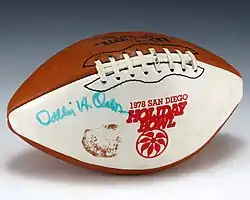 ![]() A 1978 Holiday Bowl football, signed by BYU president Dallin H. Oaks. | |||||||||||||||||||