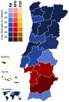 - 1 2 Democratic Alliance results are compared to the combined totals of the Social Democratic Party, the Democratic and Social Centre and the People's Monarchist Party in the 1976 election.