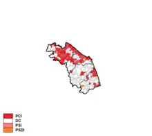 The Italian Communist Party was the largest party, narrowly ahead of Christian Democracy, but again it obtained less seats for a trick of the electoral law. Consequently, after the election Emidio Massi, the incumbent Socialist President, formed a new government including also the Christian Democracy, the Italian Democratic Socialist Party and the Italian Republican Party (organic centre-left).[1]