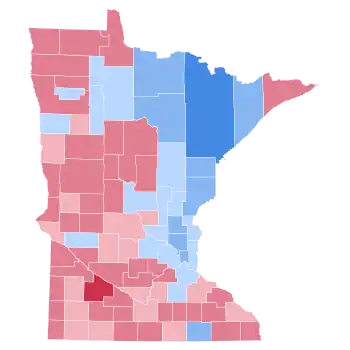 | Freeborn | 8,212 | 46.17% | 8,475 | 47.65% | 808 | 4.54% | 225 | 1.27% | 65 | 0.37% | -263 | -1.48% | 17,785 |