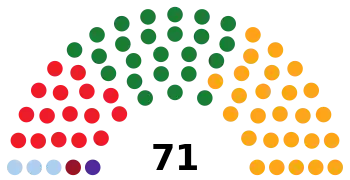 The electoral law allowed for parties and federations registered in the interior ministry, coalitions and groupings of electors to present lists of candidates. Parties and federations intending to form a coalition ahead of an election were required to inform the relevant Electoral Commission within fifteen days of the election call, whereas groupings of electors needed to secure the signature of at least one-thousandth of the electorate in the constituencies for which they sought election—with a compulsory minimum of 500 signatures—disallowing electors from signing for more than one list of candidates.[7] A minimum of five deputies would be required for the constitution of parliamentary groups in the Parliament of Galicia.[42][43]