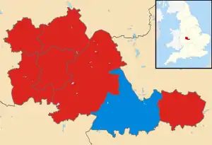 Last election 18 seats, 31.3 82 seats, 58.7% 3 seats, 4.3%
