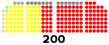 Last election 150 seats, 74.97% new party