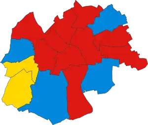 Last election 17 seats, 35.3% 18 seats, 37.3% 8 seats, 27.3%