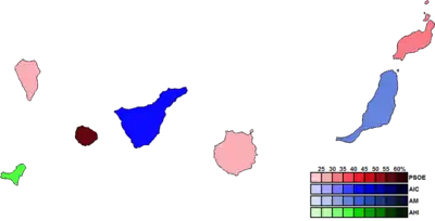 ![]() Constituency results map for the Parliament of the Canary Islands | |||||||||||||||||||||||||||||||||||||||||||||||||||||||||||||||||||||||||||||||||||||||||||||