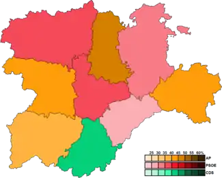 ![]() Constituency results map for the Cortes of Castile and León | ||||||||||||||||||||||||||||||||||||||||||||||||||||||||||||||||||||||||||||||||||