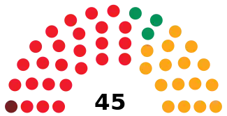 Last election 26 seats, 52.2% 16 seats, 35.4%[lower-alpha 1] 0 seats, 1.1%