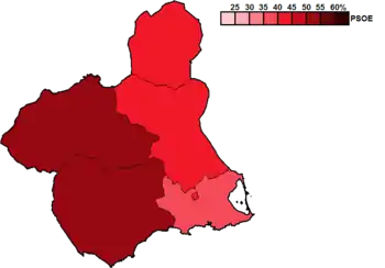 Constituency results map for the Regional Assembly of Murcia