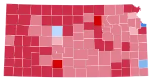 Kansas weighed in for this election as 2 points more Republican than the national average. The presidential election of 1988 was a very partisan election for Kansas, with over 98 percent of the electorate voting for either the Democratic or Republican parties, and only four political parties appearing on the ballot.[1] Voters from every county in Kansas turned out for the Republican Party, except for three, the largest example being Kansas City's Wyandotte County, which voted primarily Democratic. As of the 2020 presidential election, this is the last time Douglas County voted for a Republican presidential candidate,[2] or that Kansas voted to the left of Arizona, Florida, Georgia, Nevada, New Hampshire, New Jersey, North Carolina, South Carolina or Virginia. Bush became the first Republican to win the White House without carrying Crawford County since William McKinley in 1900, and the first to do so without carrying Ellis County since Herbert Hoover in 1928.