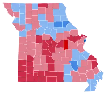 Bush won the election in the battleground state of Missouri by a narrow 4-point margin, far below the margin of victory Reagan achieved just four years earlier. Bush's loss of many northern rural counties, combined with Dukakis's strong performance in the St. Louis city area, resulted in an unusually close result in the state given the national environment. A longtime bellwether state, Missouri voted for the national winner of every presidential election from 1904 to 2004, except 1956.