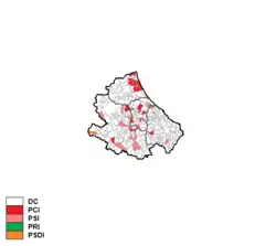 Christian Democracy was by far the largest party, while the Italian Communist Party came distantly second.