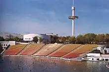 Of the 198 cyclists starting the race, 58 were riding the Tour de France for the first time.[11] The average age of riders in the race was 27.77 years,[12] ranging from the 21-year-old Antonio Miguel Díaz (Kelme–Ibexpress) to the 35-year-old Gilbert Duclos-Lassalle (Z–Tomasso).[13] The Kelme–Ibexpress cyclists had the youngest average age while the riders on Panasonic–Sportlife had the oldest.[14] The presentation of the teams – where the members of each team's roster are introduced in front of the media and local dignitaries – took place at the lakeside arena at Futuroscope theme park, 10 km (6.2 mi) north of the city of Poitiers, west-central France, which later hosted the prologue stage.[15]