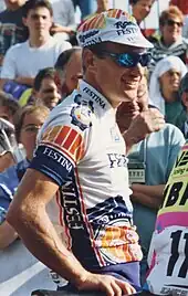 Erik Breukink was among several other riders named as favourites.[26] Sean Kelly, was the record winner of the points classification and appeared in good form, having just won the Tour de Suisse, but was thought to be working for Breukink.[33] Spanish newspaper El País considered Delgado to be the top favourite, but also named Fignon, LeMond,[34] and Gianni Bugno (Chateau d'Ax–Salotti), who had won the Giro earlier that year, as potential winners.[35] Mundo Deportivo also named Charly Mottet (RMO) among the favourites.[36] His best result that season had been a second place behind Bugno at the Giro.[37] Also on the start line was Marco Giovannetti, winner of the Vuelta and third at the Giro. According to cycling journalist Geoffrey Nicholson, his ability to perform in another three-week Grand Tour was doubted from the start, and it was agreed that he only participated to ensure a wildcard entry for his team, Seur.[38]