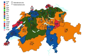 | Zürich | 35 | 740,438 | 351,688 | Swiss People's Party | 2,463,161 | 8 | |