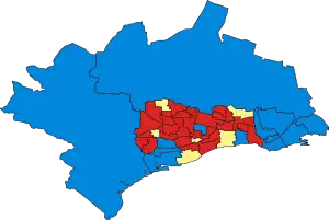 | Party | Seats | Gains | Losses | Net gain/loss | Seats % | Votes % | Votes | +/− | |