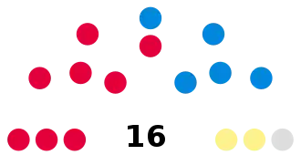 Party Seats Gains Losses Net gain/loss Seats % Votes % Votes +/−