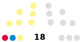Party Seats Gains Losses Net gain/loss Seats % Votes % Votes +/−