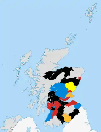Labour held most of their strongholds in the central belt, as well as Dundee and Aberdeen; even though their vote share decreased more in these areas (Such as East Lothian, down 13% from 1988 and Glasgow, down 11.8%) than elsewhere. The Conservatives were most successful in places were they hadn't stood many (if any) candidates before, such as Clackmannan (where the party only stood two candidates in 1988). Independents remained the largest party in rural areas, while the Liberal Democrats held their two councils of North East Fife and Annandale and Eskdale.[1]
