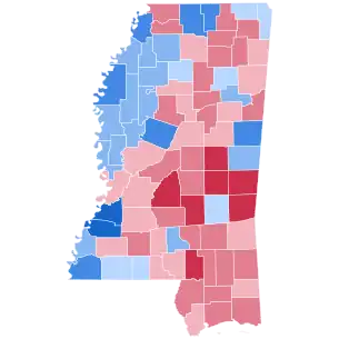 Despite the fact that Clinton was a Southern Democrat, the state remained reliably Republican as the party held two senate seats. While Clinton did manage to win a few other Southern States, Mississippi provided Bush with his highest vote percentage in the nation, which was the closest he came to winning an absolute majority in a state.[2] (However, it was only his sixth-best state in margin of victory.) It was Ross Perot's weakest state, and the only one where he failed to win more than 10% of the vote. He only did worse in the District of Columbia. As of the 2020 presidential election, this is the last election in which Hinds County voted for a Republican presidential candidate and the last election in which Tishomingo County voted for a Democratic presidential candidate.[3]