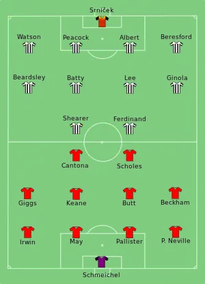 The game saw Newcastle United give a debut to £15 million world record signing Alan Shearer, who would remain at the club until his retirement as a player 10 years later and break the club's goalscoring record in the process, though he would never win a major trophy with them.[3]