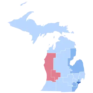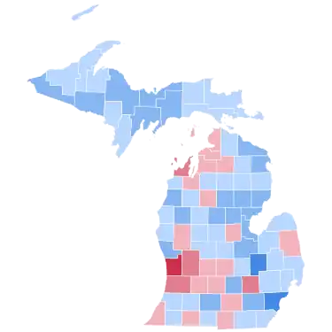 As of the 2020 presidential election, this is the last election in which Houghton, Alcona, Cheboygan, Crawford, Dickinson, Kalkaska, Luce, Mackinac, Mecosta, Lapeer, Keweenaw, Montcalm, Tuscola, Branch, Baraga, Chippewa, Huron, Wexford, Osceola, Montmorency, and Oscoda counties voted for a Democratic presidential candidate. This is also the last time all counties in the Upper Peninsula voted for a Democrat.[3]