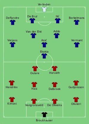 1. Midfielder Viðarsson was only on trial at Genk at the time of the match but allowed to participate according to the rules of the Belgian Super Cup at that time. Eventually he would not sign for Genk but stay with Lokeren where he was contracted at the time of the match.