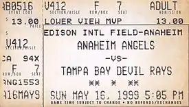 A ticket for a 1999 game between the Tampa Bay Devil Rays and the Angels.