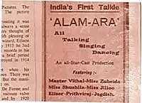 Newspaper advertisement for Alam Ara – First Indian Talkie
