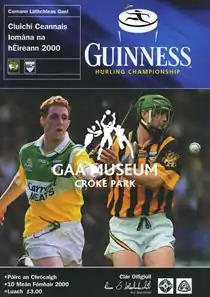 At the beginning of the second half, the Offaly selectors made some tactical changes. Wing-back Brian Whelahan and corner-forward Michael Duignan swapped positions while John Troy was brought from the substitutes' bench. These changes failed to alter the dominance of Kilkenny as ‘the Cats’ looked likely to score a goal at any time of the game. For the second time Shefflin was the man on hand to hit the fourth goal after latching onto a brilliant long clearance from substitute Canice Brennan and kicking the sliothar past Stephen Byrne from close range. In the fifty-ninth minute Johnny Pilkington clawed one back for Offaly when his shot went past James McGarry. An injury-time goal by substitute Eddie Brennan was the final decider as Kilkenny defeated their Leinster rivals by 5-15 to 1-14.[2] This game marked the end of the road for the great Offaly team of the 1990s while it was the beginning of a great decade of success for Kilkenny.[3]