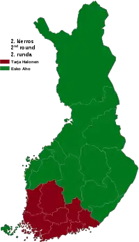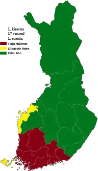 | Province | Halonen | Aho | Electorate | Votes | Valid | Invalid |
