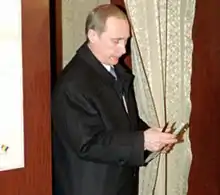 On New Year's Eve 1999, Yeltsin announced that he would be resigning early in the belief that “Russia should enter the new millennium with new politicians, new faces, new people, who are intelligent, strong and energetic, while we, those who have been in power for many years, must leave.”[3] In accordance with the constitution, Putin became acting president.