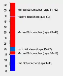Ralf and Michael Schumacher raced despite the death of their mother Elisabeth just hours before the race with the pair flying on a private jet to Cologne to be at her side.[15] They sported black armbands and no champagne was sprayed on the podium as a mark of respect.[16] Ralf also sported a black stripe on his racing helmet.[17] The Schumacher brothers left the circuit immediately after the podium celebrations and Ferrari team principal Jean Todt took Michael's place at the post-race press conference.[18] Race stewards Tony Scott-Andrews, Roger Peart and Giuseppe Musiconi formally excused the Schumacher brothers from the pre and post-race formalities.[19]