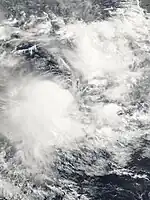An area of convection persisted east of Diego Garcia on January 27. The system moved west-southwestward, with its circulation displaced from the thunderstorms due to strong wind shear and cooler air. The MFR classified the system as a tropical disturbance on January 29 and upgraded it to a tropical depression the next day, only to downgrade it again to a disturbance on January 31, after nearly all thunderstorms diminished. For several days, the weak system drifted southwestward toward the Mascarene Islands, steered by a ridge to the southeast. On February 2, thunderstorm activity increased as the system passed over Rodrigues, although the structure resembled a monsoon depression more commonly found in the Western Pacific Ocean. Over the next day, the structure became more akin to a tropical cyclone, with increasing convection and an eye-like feature near the center.[23][2][24]