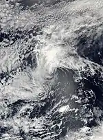 A westward-moving tropical wave from Africa crossed Central America into the eastern Pacific in late June, coalescing into a tropical depression at 12:00 UTC on July 2 well southwest of the southern tip of the Baja California Peninsula.[16] Steered westward by low-level flow, the depression failed to organize amid wind shear and cooler sea surface temperatures,[17] instead degenerating into a remnant low at 00:00 UTC on July 4. The post-tropical cyclone dissipated a day later.[16]