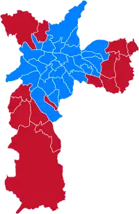The 2004 São Paulo municipal election took place in the city of São Paulo, with the first round taking place on 3 October and the second round taking place on 31 October 2004. Voters voted to elect the Mayor, the Vice Mayor and 55 City Councillors for the administration of the city. The result was a 2nd round victory for José Serra, of the Brazilian Social Democratic Party (PSDB), winning 3,330,179 votes and a share of 54,86% of the popular vote, defeating incumbent mayor Marta Suplicy of the Workers' Party (PT), who took 2,740,152 votes and a share of 45,14% of the popular vote.