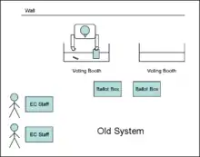 On 3 April 2006 the People's Alliance for Democracy (PAD) petitioned the Administrative Court to suspend the results of the election and accused the Election Commission of violating voter privacy. The EC repositioned voting booths so that voters' backs were to the public, whereas in previous elections, voters faced the public, with a board one-half meter tall at the front of the booth separating the voter from the public. The EC claimed the new arrangement was designed to prevent various forms of poll fraud including the use of cameras by voters to take photographs of their ballots. After the 2005 election, cameras and cameraphones had been banned from voting stations due to fears that canvassers would demand ballot photographs in return for money.[1][2][3] However, the PAD claimed that this allowed onlookers to peek over voters' shoulders and see who they voted for.[4][5]