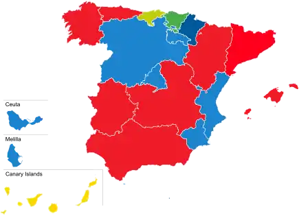 The following table lists party control in autonomous communities. Gains for a party are highlighted in that party's colour.