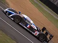 Rain dominated the weather during the two sessions, with the track drying out only for brief periods of time before heavy rains dampened the circuit once more.[15] Stéphane Sarrazin, in the #8 Peugeot, was able to set the fastest lap during a brief dry period in the second session, recording a time of 3:22.222.[16] By the end of the test day, Sarrazin's time remained unbeaten, and was in fact nearly four and a half seconds ahead of the second fastest lap, set by the #9 Peugeot. Several hundredths of a second slower still was the #1 Audi, third fastest overall. The fastest car not running a diesel engine was the #17 Pescarolo, recording a time of 3:33.939, over eleven seconds behind the overall leader. In the LMP2 class, the five cars set lap times within three seconds of one another, the Van Merksteijn Motorsport Porsche setting a 3:42.191 lap time to lead the class and place fourteenth overall in the standings. The other Porsche RS Spyder of Team Essex was second fastest, followed by the Barazi-Epsion Zytek in third.[16]