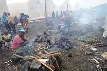 On November 26, 2008, rebel forces engaged Mai-Mai militia near the towns of Kinyando and Kwwenda despite the ceasefire, sending civilians "fleeing along highways". The UN condemned this breach of the ceasefire while calling on the Congolese government to discipline government troops, who were caught looting the village of Bulotwa.[59] Meanwhile, a crowd of 100,000 displaced persons gathered in the rebel-held town of Rutshuru, where the United Nations were distributing supplies and medicine, intended to help combat cholera, which was reported to be affecting hundreds of people, having spread through unsanitary refugee camps.[60]