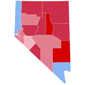 Obama ultimately carried the Silver State by a 12.5-point margin, larger than most polls anticipated. His victory rested almost entirely on winning the state's three largest jurisdictions: Clark County, home to Las Vegas; Washoe County, which contains Reno; and the independent city of Carson City,[20] which combine for 88% of Nevada's total population. Hispanics also played a large role in Obama's landslide victory. According to exit polling, they composed 15% of voters in Nevada and broke for Obama by a three-to-one margin.[21] With their support, Obama carried Washoe County by a comfortable 12-point margin and a somewhat narrower one-point margin in Carson City. These two areas hadn't gone Democratic since Lyndon B. Johnson won them in 1964. Obama also won Clark County by double digits, the first time a Democrat did so since 1964. McCain ran up huge margins in most of the more rural counties, which have been solidly Republican ever since Richard Nixon's 1968 win.[22] However, it was not nearly enough to overcome his deficit in Clark, Washoe and Carson City. Indeed, Obama's 122,000-vote margin in Clark County would have been enough by itself to carry the state, and Nevada voted more Democratic than the nation as a whole for the first time since 1960 and second since 1944.[23]