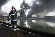 Authorities built a temporary pipe to San Juan Bay in order to bring seawater to extinguish the fire, but the fire was extinguished before it could be used.[9] Fire fighting foam was supplied from the nearby United States Virgin Islands.[9] Luis Fortuño announced on October 25 that the fire had been extinguished,[10] and estimated the initial cost to fight the fire at $6.4 million.[11]