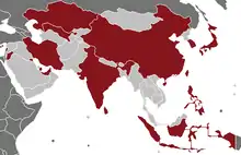 | East Asia (1+2) | Gulf (2+2) | Middle Asia (2+2) | Southeast Asia (2) | West Asia (1+2) |