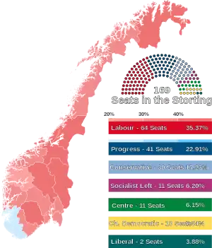 All 169 seats in the Storting 85 seats needed for a majority | ||||||||||||||||||||||||||||||||||||||||||||||||||||||||||||||||||||||||||||||||||||||||||||||||||||||||||||