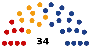 34 seats in the Parliament 18 seats needed for a majority | |||||||||||||||||||||||||