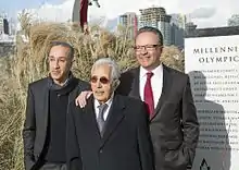 The Olympic Village plaque unveiling honoring Millennium Development Group. Shahram Malek (left), Amir Malekyazdi (middle), Peter Malek (right).