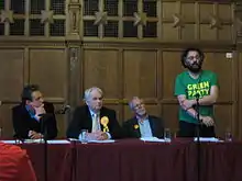 Political group leaders and senior politicians for the Oxford City Council (outgoing council at the election in 2010). From left to right: Jonathan Gittos candidate for the Conservatives, Councillor Stephen Brown leader of the political group of Liberal Democrats, Councillor John Tanner senior member of the Labour group, Councillor Craig Simmons leader of the Green group.