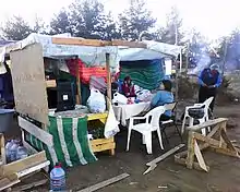 A Pacific-wide tsunami warning was not issued by the Pacific Tsunami Warning Center, although the organization pointed out the possibility of local tsunamis within 100 kilometres (62 mi) of the epicentre, roughly the area between La Serena and Concepción.[32] Half an hour after the first earthquake, the Hydrographic and Oceanographic Service of the Chilean Navy (Servicio Hidrográfico y Oceanográfico de la Armada, SHOA) issued a tsunami warning for the area between Coquimbo and Los Lagos regions, as a way of "keeping people protected" against the possible occurrence of new tsunamis.[17][33][34] President Piñera urged coastal residents to move to higher ground in case of a tsunami.[34] Following the tsunami alert, thousands of residents of central Pichilemu fled to La Cruz Hill, with some of them staying there for several days,[35][36] and received advice from members of the Army.[37] People from the village of Cáhuil stayed at Cordón.[38] The tsunami warning emitted by SHOA was lifted that same day at around 15:50 local time.[39]