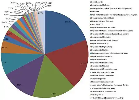 - ↑ "Summary Tables" (PDF). Fiscal Year 2011 Budget of the U.S. Government. United States Office of Management and Budget. Table S–4: Proposed Budget by Category. Retrieved March 14, 2015.